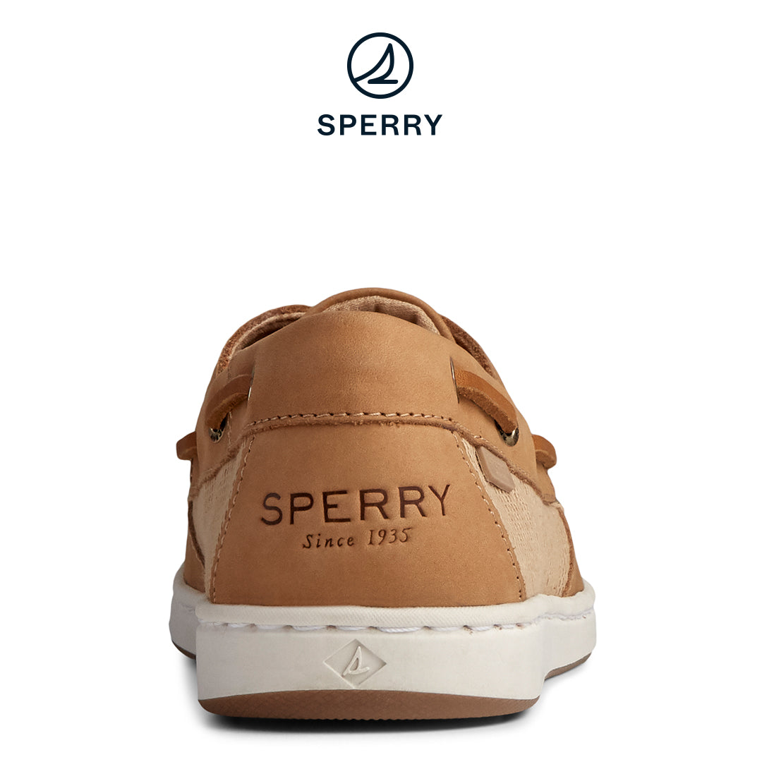 Ces chaussures bateau Sperry à 2 œillets pour femmes sont prêtes pour un après-midi chaud sur les vagues. Cette chaussure bateau classique à deux œillets est fabriquée en cuir souple et dispose d'une assise plantaire rembourrée en mousse à mémoire de forme incroyablement confortable, d'un système de laçage à 360 degrés et d'un design à enfiler avec lacets sur le devant.