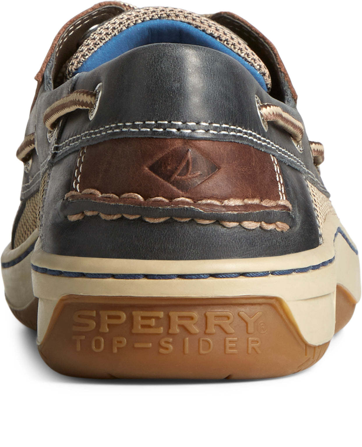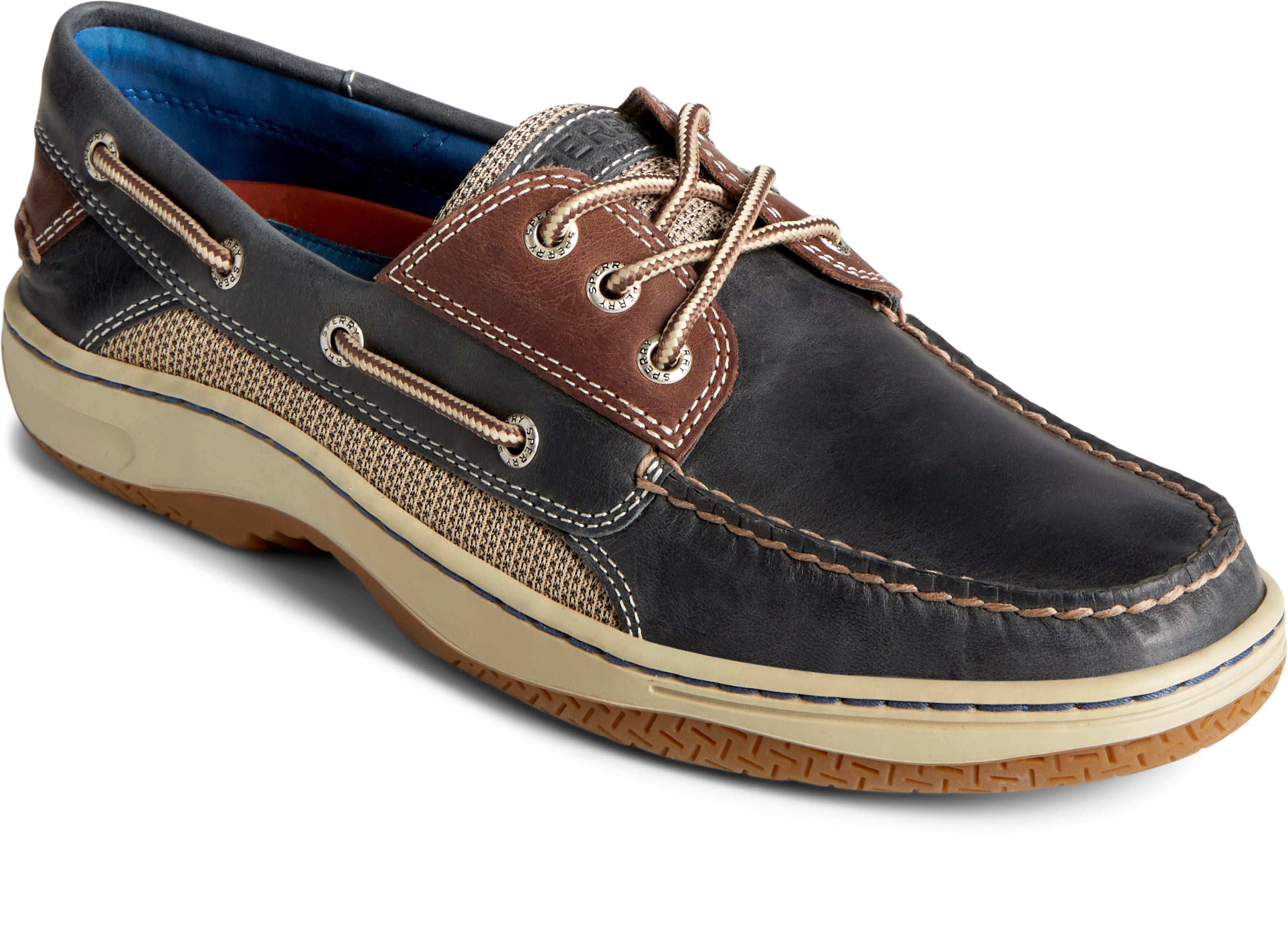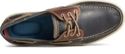 Billfish 3-Eye Wide Leather pour hommes, bleu marine/marron
