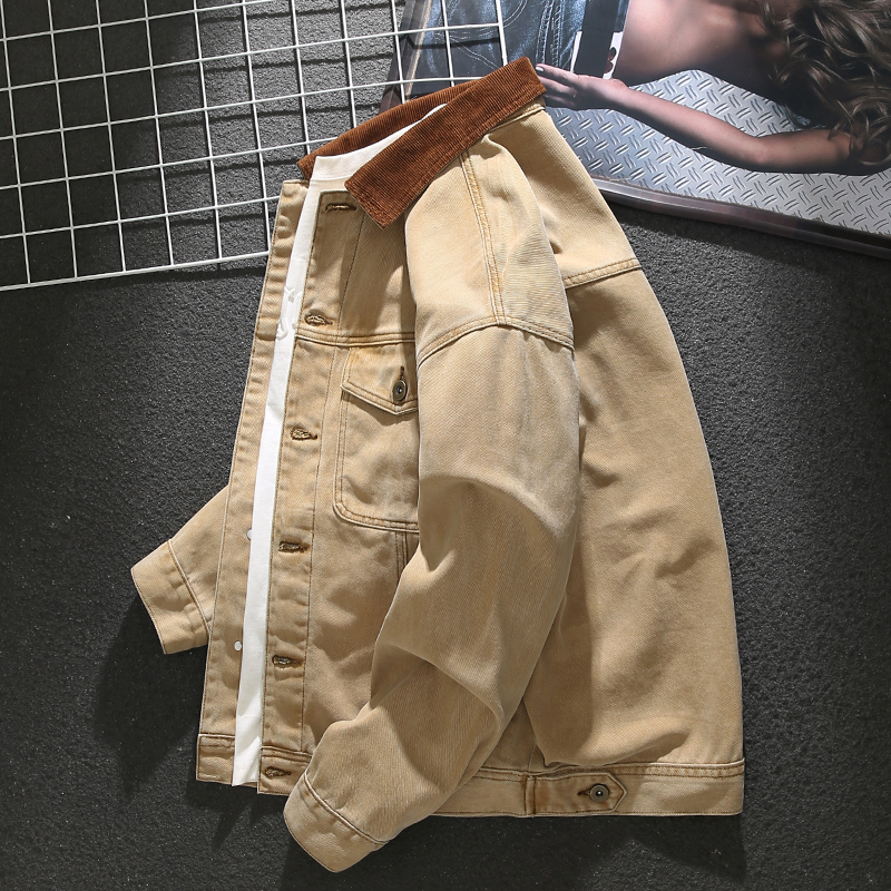 New trendy loose color block lapel denim jacket