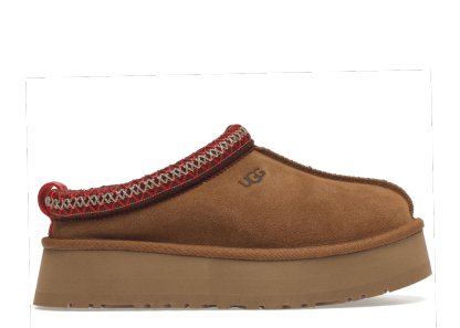 Ce modèle présente une tige en daim de couleur châtaigne, qui lui confère une apparence riche et classique. En guise d'accent décoratif, une tresse rouge et blanche réalisée en polyester recyclé ajoute une touche de couleur et souligne l'engagement de la marque envers la durabilité. La doublure intérieure, conçue en UGGPLUSH, combine de la laine recyclée et de la peau de mouton, assurant un confort inégalé et une chaleur appréciable, particulièrement par temps froid.